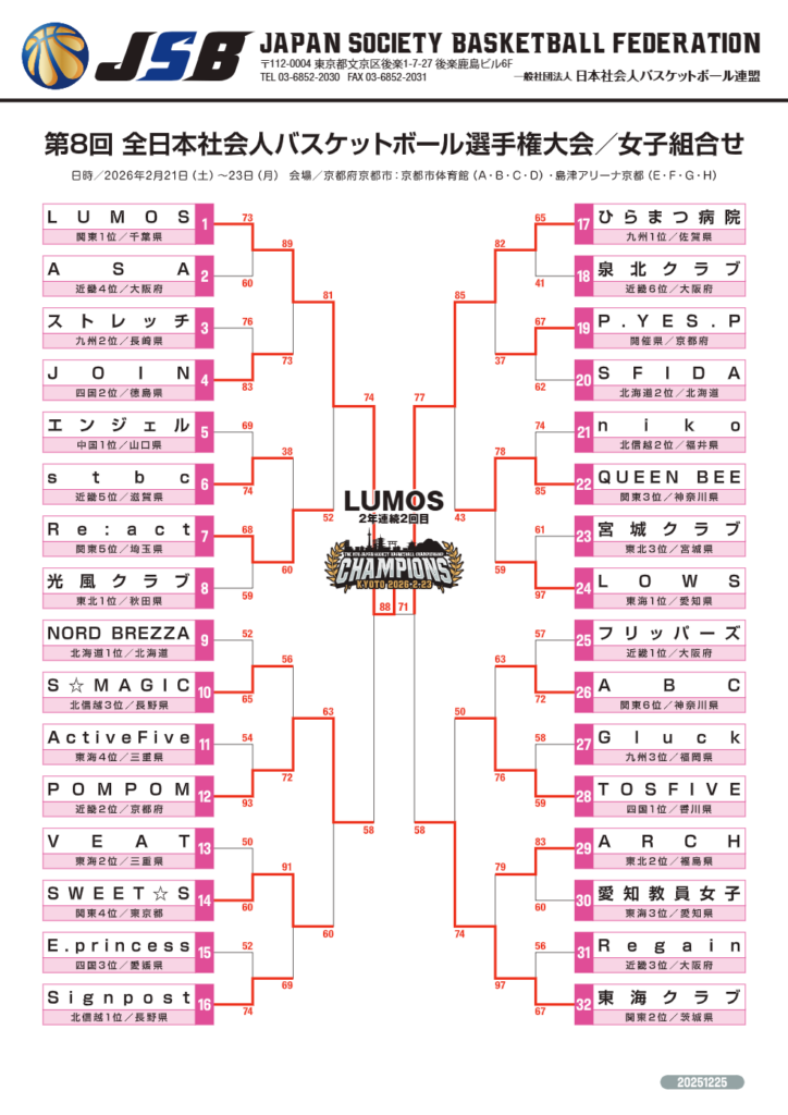 第8回 全日本社会人バスケットボール選手権 京都大会 結果